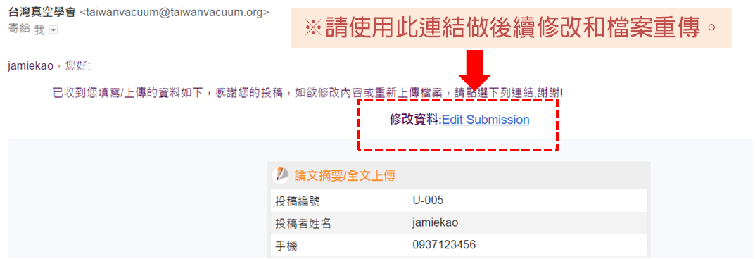 A2. 如檔案或資料欲修改,請利用自動email內附上之連結「修改資料Edit Submission」連結。